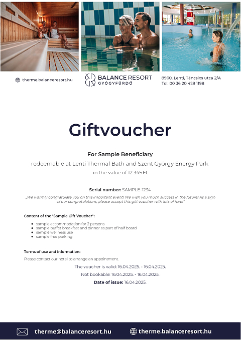 - The voucher can be used within 1 year from the date of issue, until the indicated deadline.